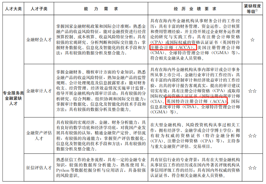 總結(jié)來說,具有在海內(nèi)外金融機(jī)構(gòu)從事財(cái)務(wù)會計(jì)的工作經(jīng)歷;具有豐富的財(cái)務(wù)管理、資金運(yùn)作、會計(jì)核算和費(fèi)用管理經(jīng)驗(yàn),并主持開展過企業(yè)財(cái)務(wù)運(yùn)作理論的研究與實(shí)踐工作;具有國際權(quán)威的資格認(rèn)證證書(ACCA英國國際注冊會計(jì)師等),符合相關(guān)金融從業(yè)人員資格。對符合目錄要求的金融人才,將享受: