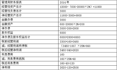 (1)編制甲公司2014年的管理用財(cái)務(wù)報(bào)表(提示:按照各種損益的適用稅率計(jì)算應(yīng)分擔(dān)的所得稅,結(jié)果填入下方表格中,不用列出計(jì)算過(guò)程)