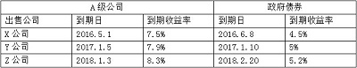 2012年1月1日,公司收集了當(dāng)時(shí)上市交易的3種A級(jí)公司債券及與這些上市債券到期日接近的政府債券的相關(guān)信息。