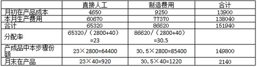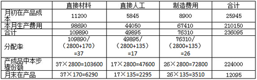 (1)月初在產(chǎn)品成本(單位:元)