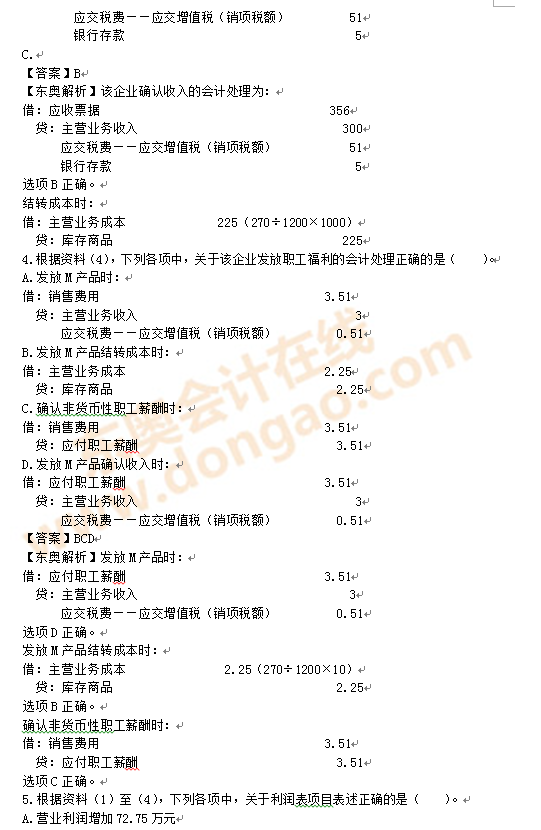 (4)31日,以其生產(chǎn)的M產(chǎn)品10件作為福利發(fā)放給銷售人員。每件市場(chǎng)價(jià)格為0.3萬元,與其計(jì)稅價(jià)格一致。