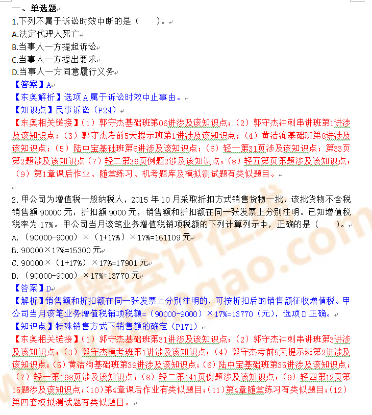 2016初級職稱《經(jīng)濟(jì)法基礎(chǔ)》真題及解析5月14日