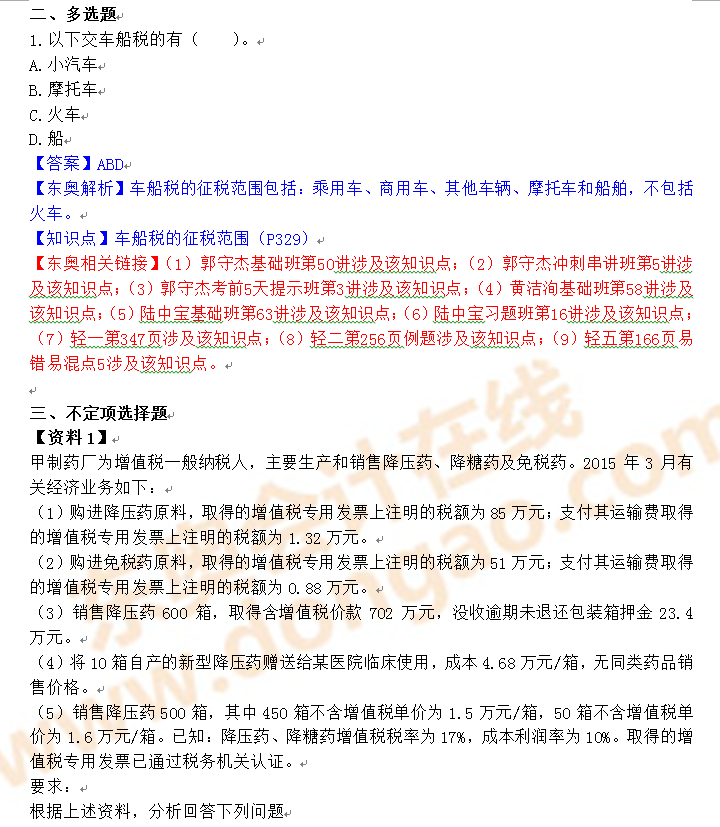 下面是2016初級(jí)會(huì)計(jì)師考試多選題和不定項(xiàng)選擇題: