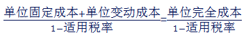 上述公式中,單位成本是指單位全部成本費用,可以用單位制造成本加上單位產(chǎn)品負擔的期間費用來確定。
