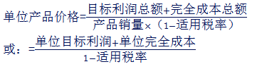 目標利潤定價法是根據(jù)預期目標利潤和產(chǎn)品銷售量、產(chǎn)品成本、適用稅率等因素來確定產(chǎn)品銷售價格的方法。其計算公式為: