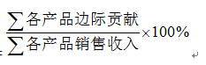 所以:加權(quán)平均邊際貢獻(xiàn)率=∑(各產(chǎn)品邊際貢獻(xiàn)率×各產(chǎn)品占總銷售比重)