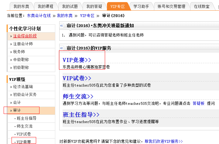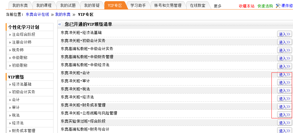 第二步:點(diǎn)擊“您已開通的VIP班級清單”中對應(yīng)科目的“進(jìn)入”鍵