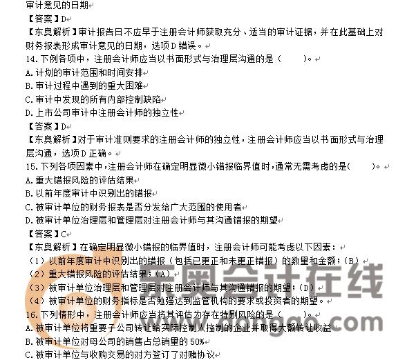 2016年注冊會計師考試真題及答案(審計回憶版)