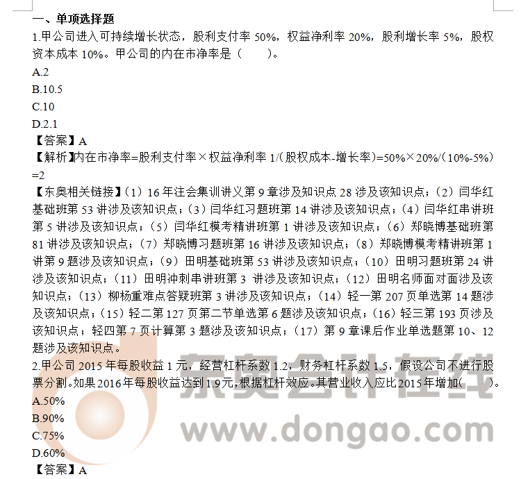 2016年注冊會計師考試《財管》考試已順利結(jié)束,東奧對2016年注會專業(yè)階段考試《財管》真題及答案進(jìn)行了整理,以下是2016年CPA《財管》真題及答案解析,希望對考生有所幫助。