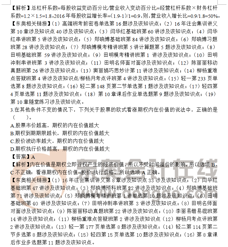 2016注會《財管》考試真題及參考答案(考生回憶版)