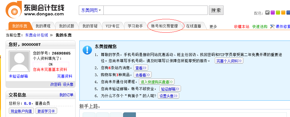 1.進(jìn)入我的東奧點擊右側(cè)賬號和交易管理