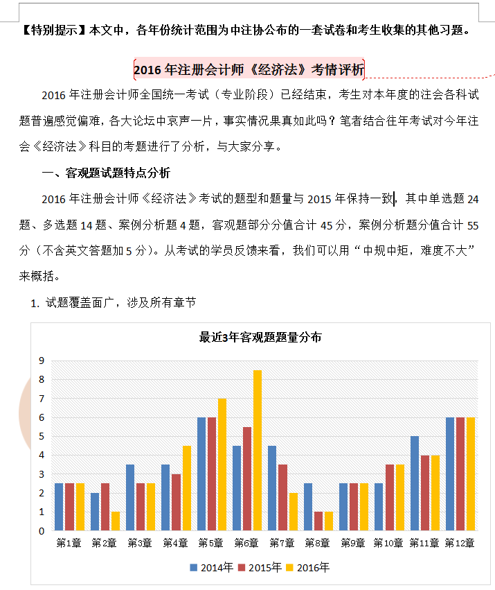 2016注冊會計(jì)師《經(jīng)濟(jì)法》考情評析