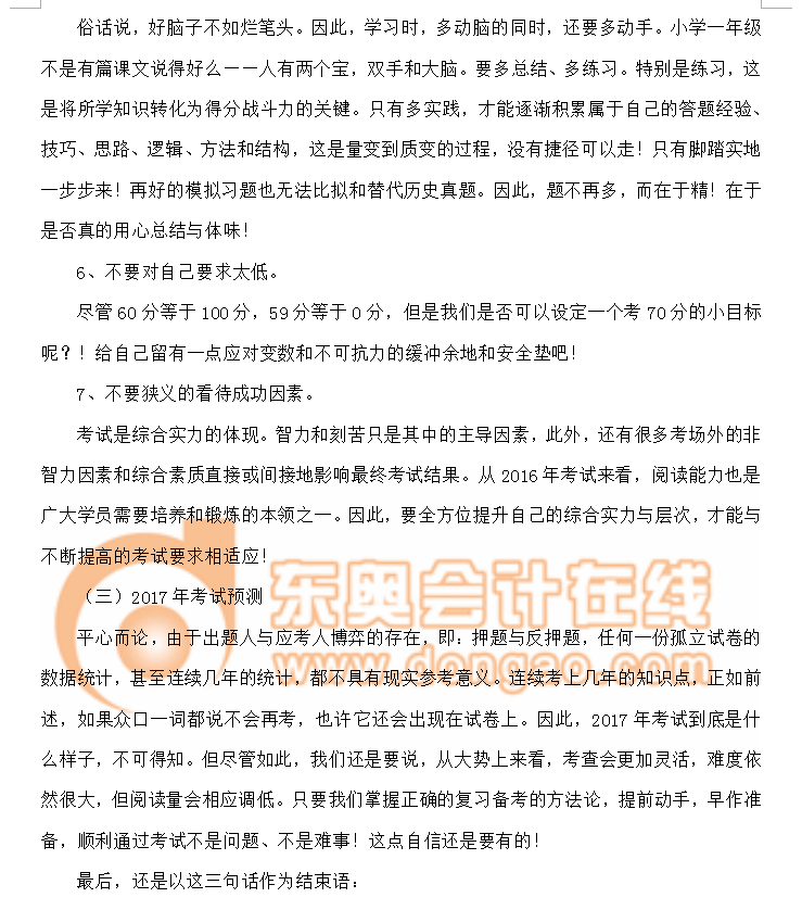 以銅為鏡,可以正衣冠;以史為鏡,可以知興替。以歷史試卷為參照,可以捕捉趨勢。因此,在開始新的注會備考征程之前,很有必要對歷史考題,特別是2016年的試卷進(jìn)行深入、透徹的解析。這么做的目的并不是希望藉此去預(yù)測明年會考什么、不考什么;而是要據(jù)此去把握考試的大勢,這比一城一地的得失、某個具體知識點的押題來得更為重要!這是方向性的大問題!