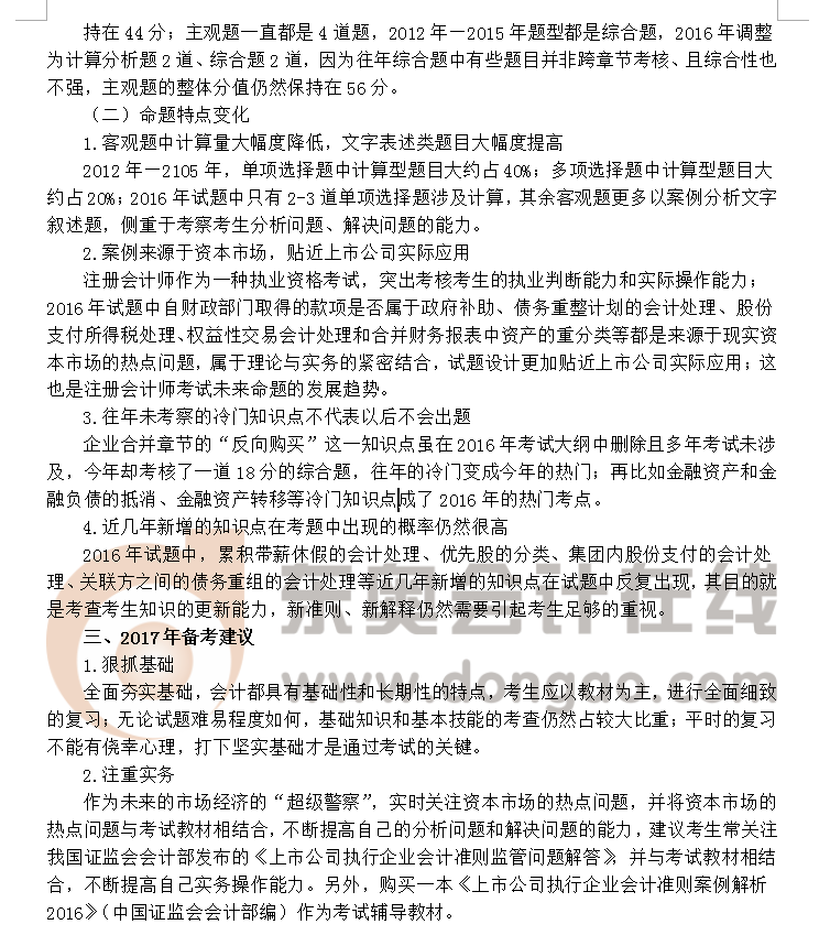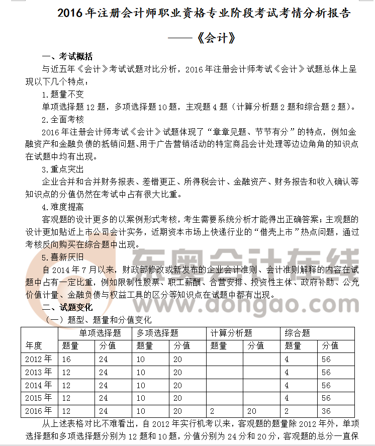 2016注冊(cè)會(huì)計(jì)師考試《會(huì)計(jì)》考情分析