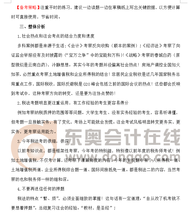 2016年注冊(cè)會(huì)計(jì)師全國(guó)統(tǒng)一考試(專業(yè)階段)已經(jīng)結(jié)束,考生對(duì)本年度的注會(huì)各科試題普遍感覺偏難,各大論壇中哀聲一片,事實(shí)情況果真如此嗎?筆者結(jié)合往年考試對(duì)今年注會(huì)《稅法》科目的考題進(jìn)行了分析,與大家分享。