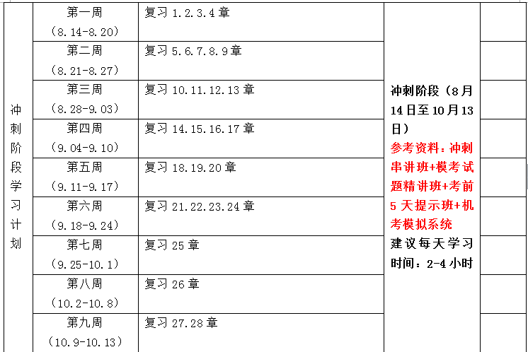 2.腦海中基本有每章節(jié)的知識體系了,跟著老師的沖刺串講班,做最后的查缺補漏;