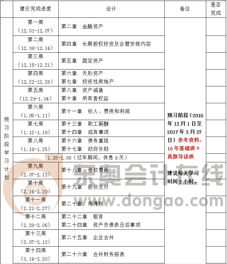 2017年注會(huì)綜合考試《會(huì)計(jì)》學(xué)習(xí)計(jì)劃