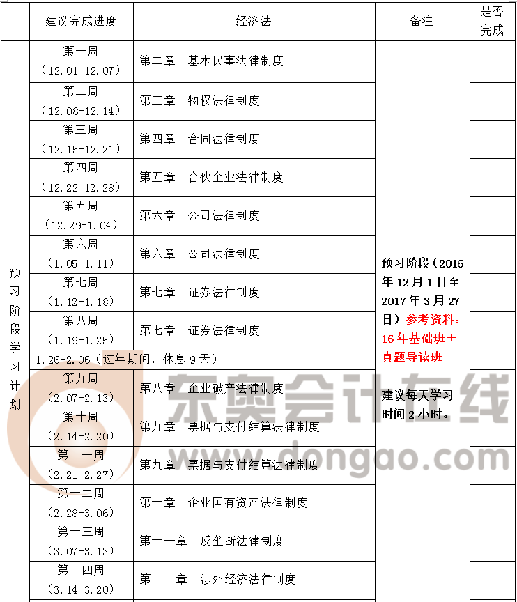 2017注會(huì)綜合考試《經(jīng)濟(jì)法》學(xué)習(xí)計(jì)劃