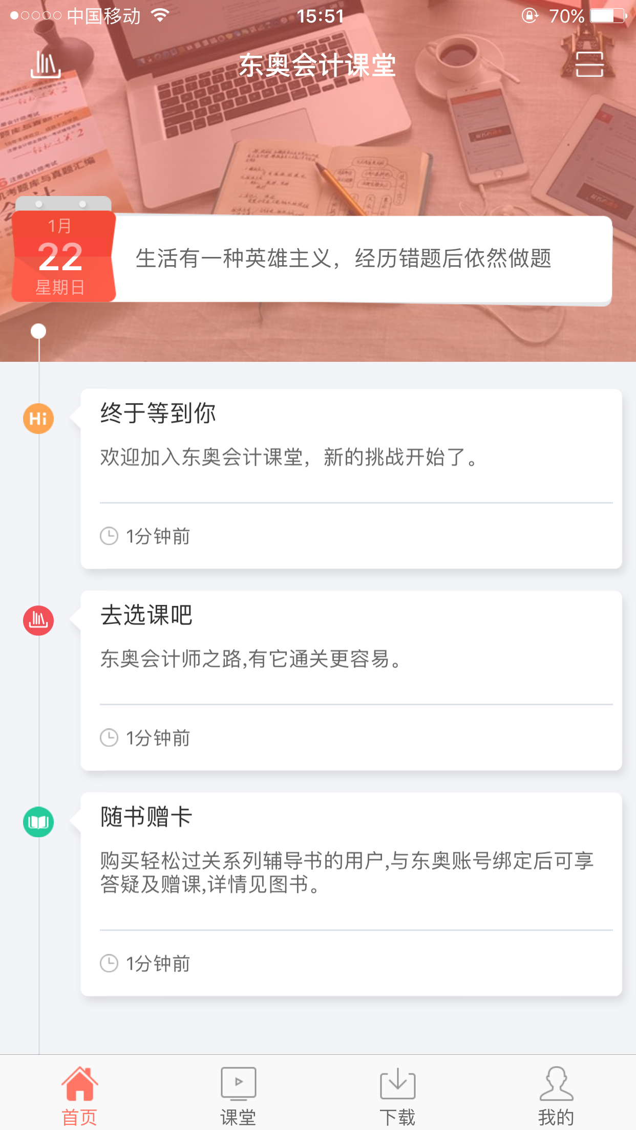 東奧會(huì)計(jì)課堂是東奧會(huì)計(jì)在線旗下專為注冊(cè)會(huì)計(jì)師、稅務(wù)師、初級(jí)會(huì)計(jì)職稱、中級(jí)會(huì)計(jì)職稱、高級(jí)會(huì)計(jì)師、會(huì)計(jì)從業(yè)資格等考試學(xué)員精心打造的一款移動(dòng)學(xué)習(xí)應(yīng)用產(chǎn)品。憑借良師親自授課,精心講解,讓你的學(xué)習(xí)不再困惑。應(yīng)用通過(guò)課件、講義方式,結(jié)合清新的界面設(shè)計(jì)和人性化的操作,實(shí)現(xiàn)隨時(shí)隨地的學(xué)習(xí)的目的。