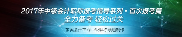 【東奧小編】2017年中級(jí)會(huì)計(jì)職稱報(bào)名時(shí)間為2017年3月1日-31日,符合報(bào)名條件的報(bào)考人員按屬地化原則在其工作所在地報(bào)名參加考試。中級(jí)會(huì)計(jì)考試將于2017年9月9日-10日分兩個(gè)批次進(jìn)行,全部采用無(wú)紙化考試方式。2017年中級(jí)職稱新考季來(lái)臨,東奧會(huì)計(jì)在線中級(jí)職稱頻道特針對(duì)不同類別的考生,推出2017年中級(jí)職稱報(bào)考指導(dǎo)系列,期以對(duì)考生提供幫助。