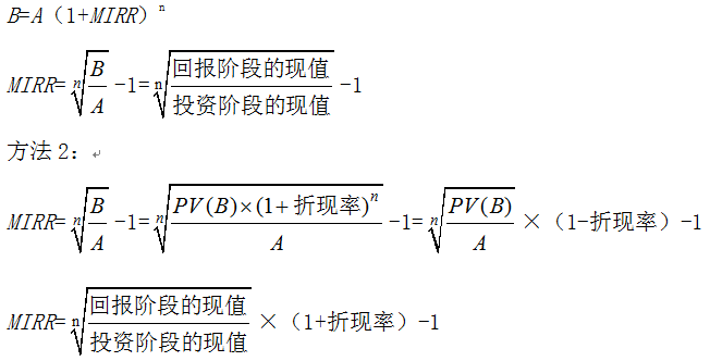 (2)修正的內(nèi)含報(bào)酬率法(Modified Internal Rate of Return,MIRR)