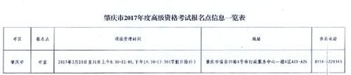 附件二:肇慶市2017年度高級(jí)資格考試報(bào)名點(diǎn)信息一覽表