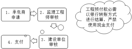 承包商申報(bào)→監(jiān)理工程師審核→工程建設(shè)單位的工程管理、合同管理、財(cái)務(wù)管理部門審核→建設(shè)單位負(fù)責(zé)人(法人代表)審批→承包商提供結(jié)算發(fā)票→支付。