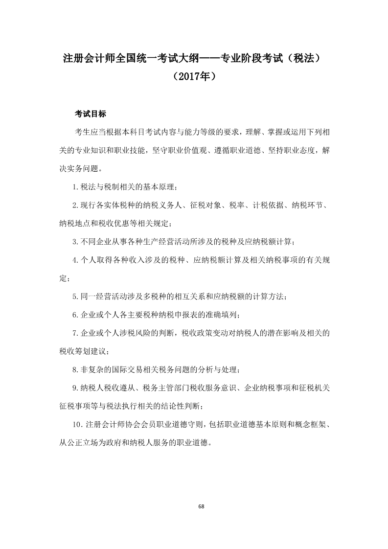 2017注冊會計師全國統(tǒng)一考試大綱《稅法》