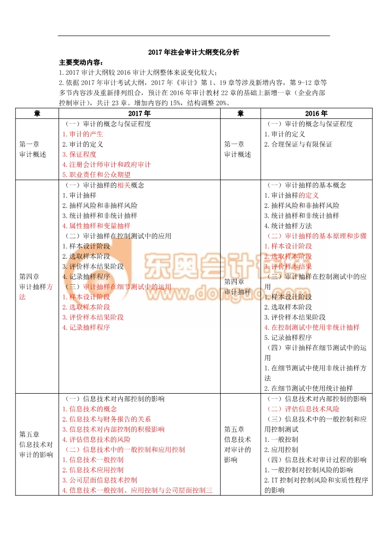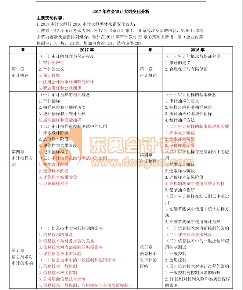 2017年注冊會計師考試《審計》考試大綱變化分析