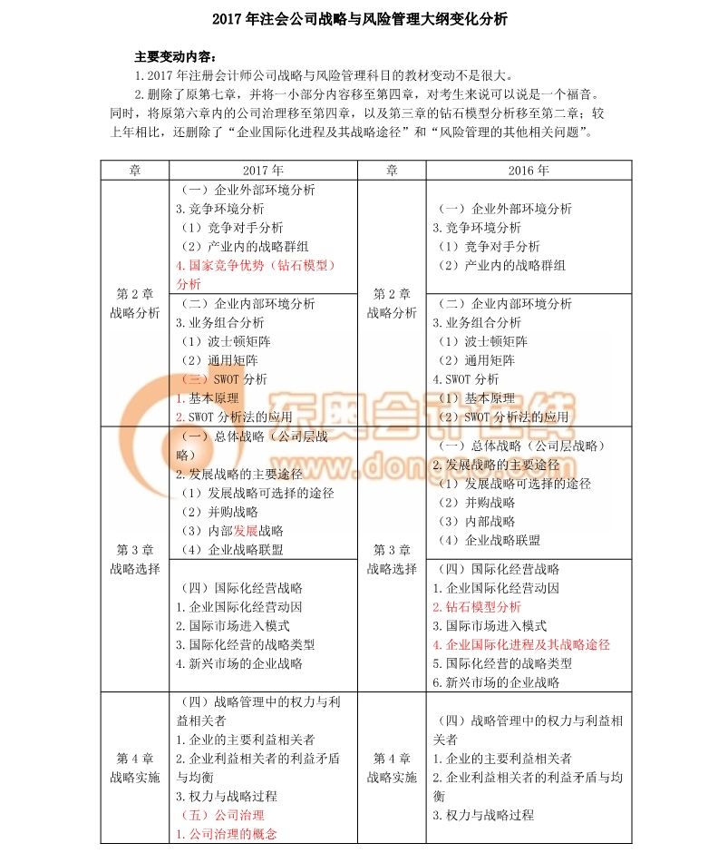 2017年注冊(cè)會(huì)計(jì)師考試《戰(zhàn)略》考試大綱變化分析