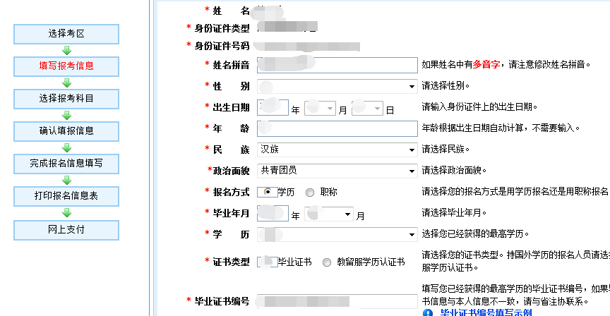 報(bào)名流程分為七步,分別為:選擇考區(qū)——填寫報(bào)考信息——選擇報(bào)考科目——確認(rèn)填報(bào)信息——完成報(bào)名信息填寫——打印報(bào)名信息表——網(wǎng)上支付