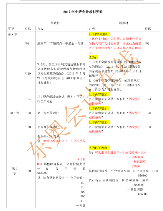 2017年中級(jí)會(huì)計(jì)實(shí)務(wù)【教材變化】