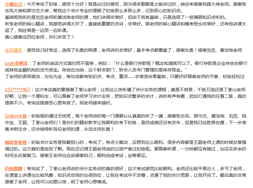 看到評(píng)論中很多東奧學(xué)員表示信心十足,坐等拿證,小編打心眼里為大家感到高興,還有一些沒考的小伙伴在求經(jīng)驗(yàn),求分享。希望考前考后的小伙伴們可以在我們的2017初級(jí)會(huì)計(jì)職稱考后討論區(qū)里互相幫助,暢所欲言哦。