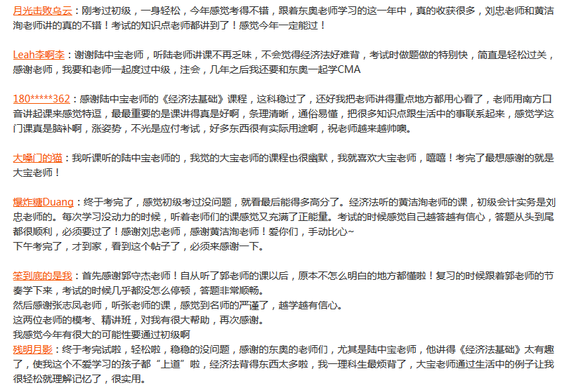 2017年初級會計職稱考試正在如火如荼進行中,東奧初級會計考后交流區(qū)里收到了考生們分享的大量信息(包括考情分享、考試經(jīng)驗等),東奧名師對這些信息收集整理,小伙伴們快來圍觀吧!