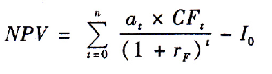 確定當量法 | 確定當量法就是一種對項目相關現(xiàn)金流進行調(diào)整的方法式中: at:t年現(xiàn)金流量的確定當量系數(shù),它在0~1之間。 rF:無風險利率 | 利用確定當量系數(shù),可以把不確定的現(xiàn)金流量折算為確定的現(xiàn)金流量。然后用無風險報酬率作為折現(xiàn)率計算風險調(diào)整后的凈現(xiàn)值,也就是通過縮小凈現(xiàn)值計算的分子來完成風險的處置 | 確定當量法對風險和時間分別進行了調(diào)整,它首先將現(xiàn)金流量中的風險因素排除在外,然后將確定的現(xiàn)金流量以無風險報酬率進行折現(xiàn),在理論上受到好評 |