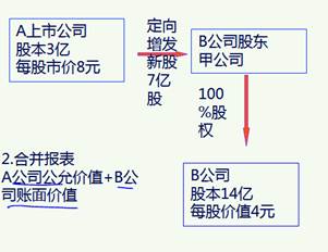 ?、儋Y產(chǎn)負債:法律上母公司(被購買方)公允+法律上子公司(購買方)賬面價值