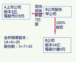 反向購買中,法律上的子公司(購買方)的企業(yè)合并成本是指其如果以發(fā)行權益性證券的方式為獲取在合并后報告主體的股權比例,應向法律上母公司(被購買方)的股東發(fā)行的權益性證券數(shù)量與其公允價值計算的結果。