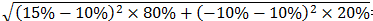 投資組合的期望報酬率=80%×15%+20%×(-10%)=10%,投資組合的標準差==10%。
