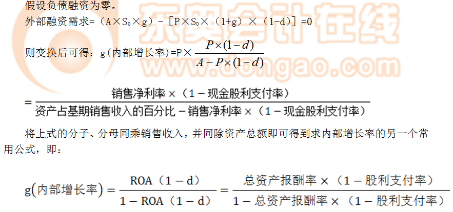g(內(nèi)部增長(zhǎng)率)= g(可持續(xù)增長(zhǎng)率)= ROA為公司總資產(chǎn)報(bào)酬率(即稅后凈利/總資產(chǎn))