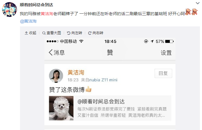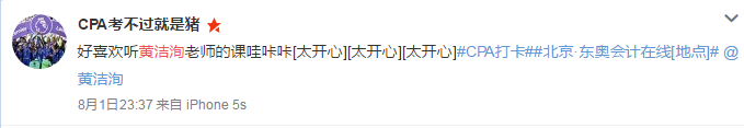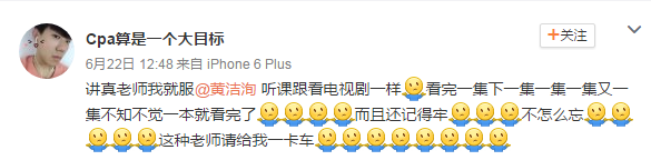 除了日常授課,黃潔洵老師還經(jīng)常在微博上與學(xué)員互動(dòng),解答學(xué)員關(guān)于課程、考試、學(xué)習(xí)的問(wèn)題,那么認(rèn)真負(fù)責(zé),愛崗敬業(yè)的黃老師讓人不得不服。