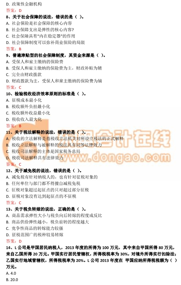 真題詳情點(diǎn)擊下載:2014年中級(jí)經(jīng)濟(jì)師財(cái)政稅收真題及答案解析