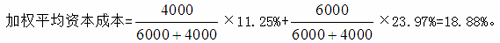【答案解析】本題的主要考核點是加權(quán)平均資本成本的計算。股權(quán)資本成本=11%+1.41×9.2%=23.97%