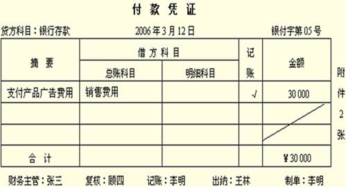 付款憑證是根據(jù)審核無(wú)誤的有關(guān)庫(kù)存現(xiàn)金和銀行存款的付款業(yè)務(wù)的原始憑證填制的。付款憑證的填制方法與收款憑證基本相同,不同的是在付款憑證的左上角應(yīng)填列貸方科目,即“庫(kù)存現(xiàn)金”或“銀行存款”科目,“借方科目”欄應(yīng)填寫與“庫(kù)存現(xiàn)金”或“銀行存款”相對(duì)應(yīng)的一級(jí)科目和明細(xì)科目。