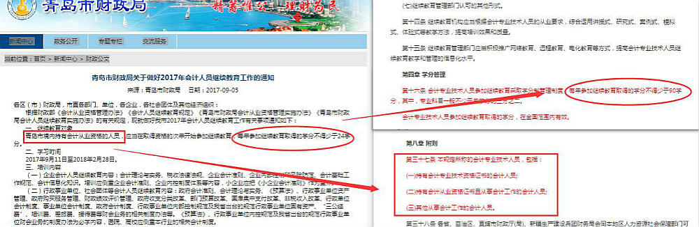 9月5日青島財(cái)政局公布《青島市財(cái)政局關(guān)于做好2017年會(huì)計(jì)人員繼續(xù)教育工作的通知》中明確指出2017年青島市境內(nèi)持有會(huì)計(jì)從業(yè)資格的人員都要接受繼續(xù)教育,取得學(xué)分不得少于24學(xué)分,繼續(xù)教育時(shí)間為2017年9月11日至2018年2月28日。