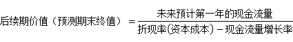 企業(yè)價(jià)值=預(yù)測期現(xiàn)金流量現(xiàn)值+后續(xù)期價(jià)值現(xiàn)值。通常后續(xù)期有兩種情景: