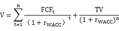 企業(yè)價值等于確定預測期內(nèi)現(xiàn)金流量的折現(xiàn)值之和,加上終值的現(xiàn)值,其計算公式如下: