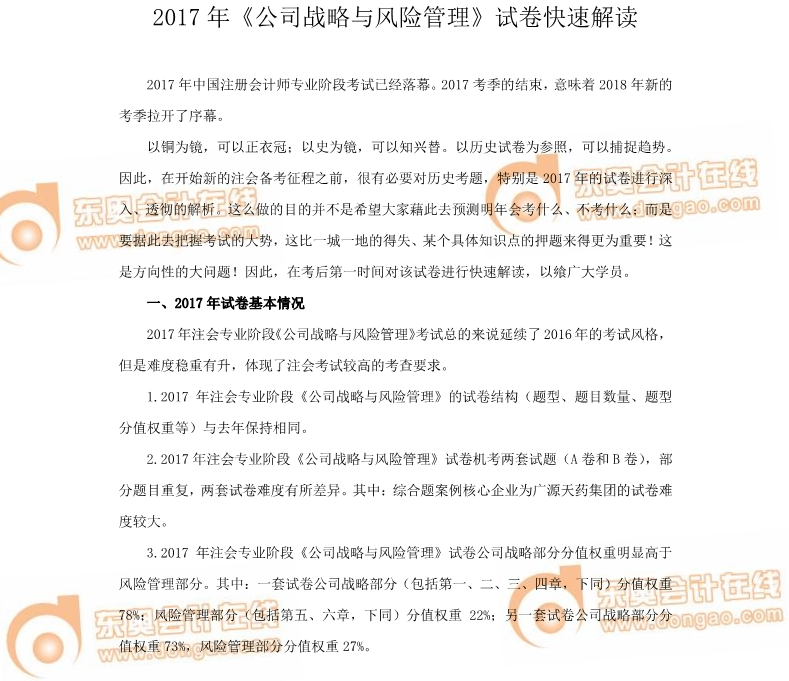 考后點(diǎn)評(píng):東奧攜手呂鵬解析2017注會(huì)戰(zhàn)略