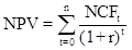 計(jì)算方法 | =各年凈現(xiàn)金流量現(xiàn)值之和 式中:NCFt表示第t年的現(xiàn)金凈流量;n表示項(xiàng)目預(yù)計(jì)使用年限;r表示貼現(xiàn)率。 |