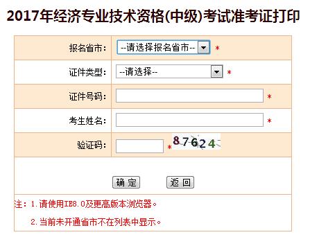 湖南省2017年中級經(jīng)濟師準考證打印入口已開通
