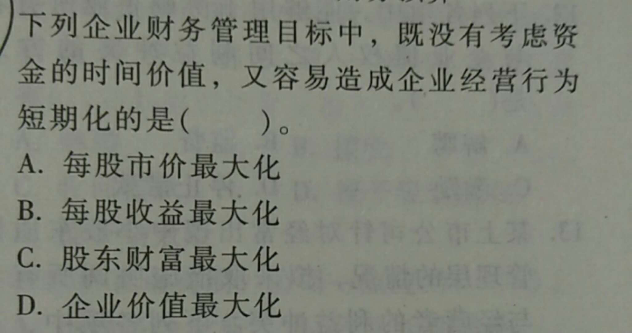 1.下列各項企業(yè)財務(wù)管理目標(biāo)中,既沒有考慮資金的時間價值、也沒有考慮投資風(fēng)險的是( )。